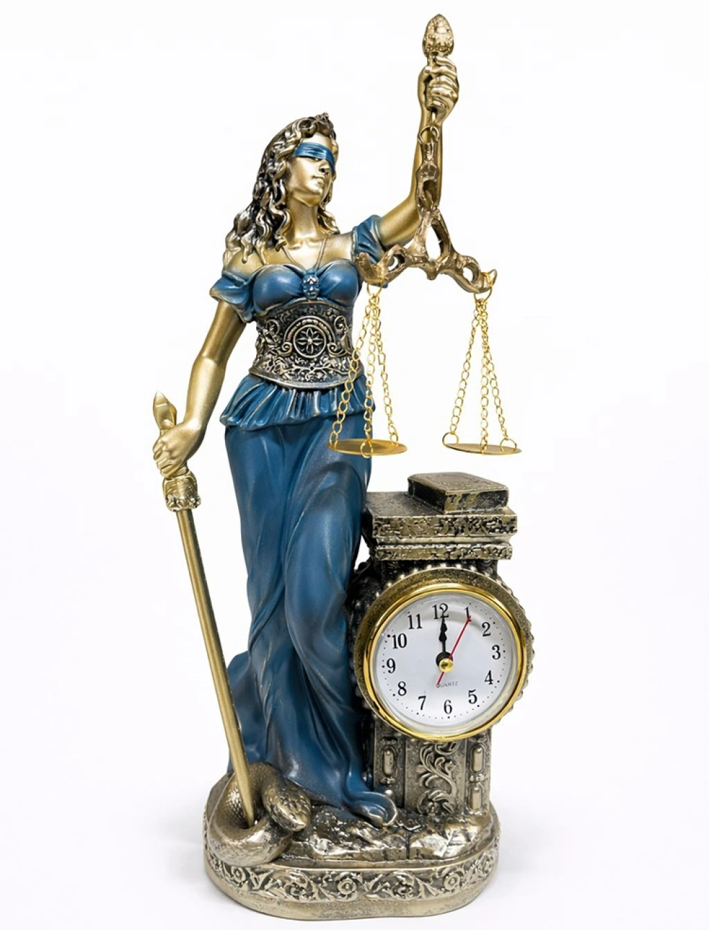 35X14 CM POLYESTER SAATLİ ADALET FİGÜRÜÜrün Özellikleri35x14 cm Polyester Saatli Adalet Figürü, klasik adalet sembolünü dekoratif saat tasarımı ile bir araya getiren şık ve dikkat çekici bir masa aksesuarıdır. 35x14 cm ölçüsü sayesinde ofis masası, makam odası, kitaplık ve vitrin alanlarında estetik ve prestijli bir görünüm sunar. Elinde terazi tutan figür detayı ile güçlü bir adalet sembolü vurgusu oluştururken, alt bölümde yer alan entegre saat kısmı ürüne işlevsellik kazandırır. Hem dekoratif hem kullanışlı yapısıyla bulunduğu ortama zarif bir ofis dekor ürünü kimliği kazandırır. Dayanıklı polyester malzeme yapısı sayesinde uzun süre formunu korur ve dekoratif amaçlı güvenle kullanılabilir. Hukuk büroları ve kurumsal çalışma alanları için anlamlı bir masa üstü aksesuarıdır.Ürün Teknik Özellikleri Özellik Açıklama Ürün Adı 35x14 Cm Polyester Saatli Adalet Figürü Malzeme Polyester Ölçü 35 x 14 cm Tasarım Adalet figürü ve entegre masa saati Kullanım Alanı Ofis, hukuk bürosu, masa üstü ve vitrin Paket İçeriği1 adet 35x14 cm Polyester Saatli Adalet Figürü