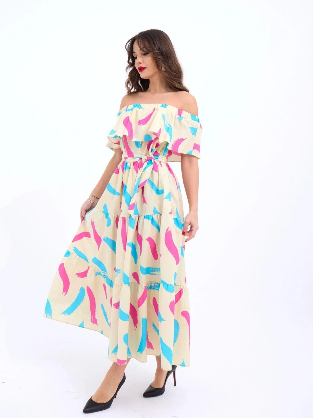 Modelin Ölçüleri: Boy:165, Kg:55, Göğüs:90, Bel:72, Kalça: 100