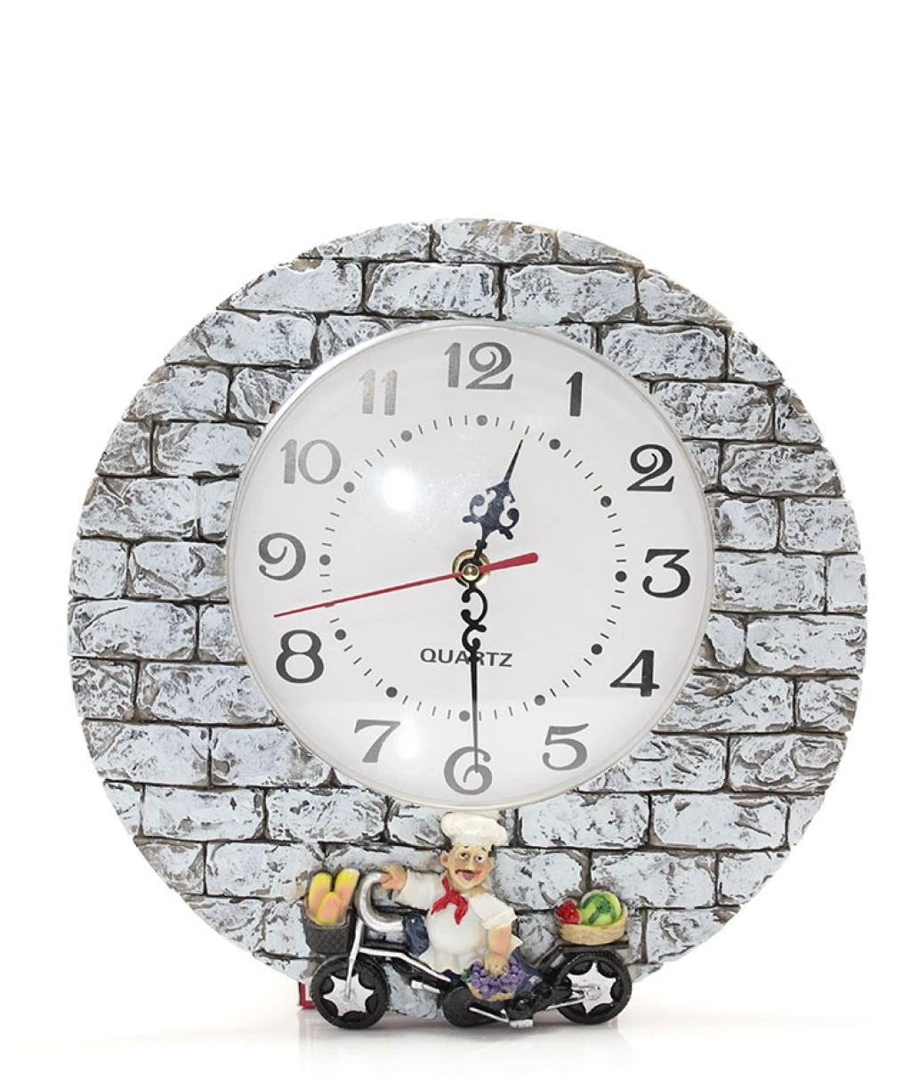 AŞÇI TASARIMLI POLYESTER DUVAR SAATİ MODEL 1Ürün ÖzellikleriAşçı Tasarımlı Polyester Duvar Saati Model 1, mutfak ve yemek odalarına şıklık katan eğlenceli ve işlevsel bir saattir. Beyaz tuğla desenli çerçevesi ve sevimli aşçı figürüyle özellikle mutfaklarda kullanıma uygundur. 29 cm boyutundadır ve duvara kolayca asılabilir.Paket İçeriği1 adet Aşçı Tasarımlı Polyester Duvar Saati Model 1