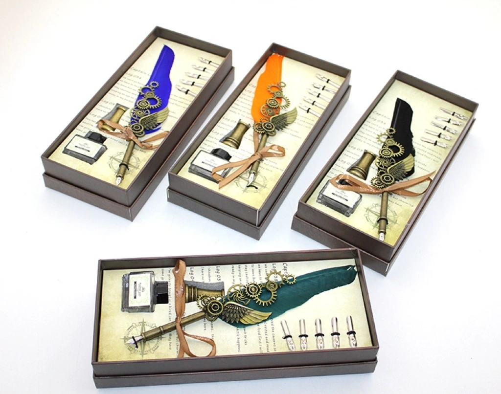 DIVIT HOKKA SETİ MODEL 5Ürün ÖzellikleriDivit Hokka Seti Model 5, renkli tasarımı ve zarif işleme detaylarıyla hem estetik hem de işlevsel bir yazı setidir. Tüy divit, dikkat çekici renkli tasarımı ve ince işçilikle süslenmiş detaylarıyla yazı yazmayı daha keyifli hale getirir. Hokka, mürekkebinizi düzenli ve şık bir şekilde saklamanıza olanak tanır. Klasik ve zarif tasarımı, bu seti dekoratif bir masa aksesuarı ve aynı zamanda özel bir hediye seçeneği haline getirir. Koleksiyon severler ve geleneksel yazı sanatlarına ilgi duyanlar için mükemmel bir seçimdir.Not: Ürün farklı renklerde mevcuttur ve stok durumuna göre karışık gönderim yapılmaktadır.Paket İçeriği1 adet Divit Hokka Seti Model 5