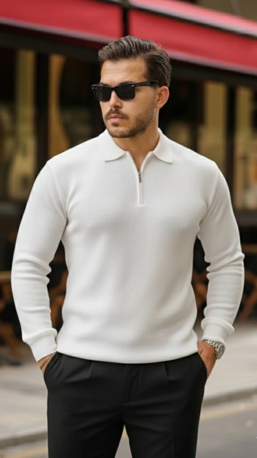 Erkek Fermuarlı Bisiklet Yaka Dokulu Uzun Kollu Triko