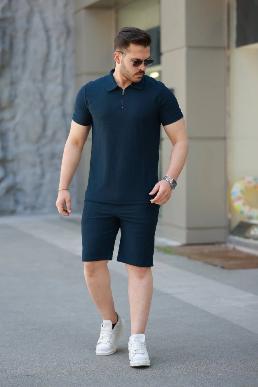 Erkek Yakalı Fermuarlı T-shirt şort Ikili Takım