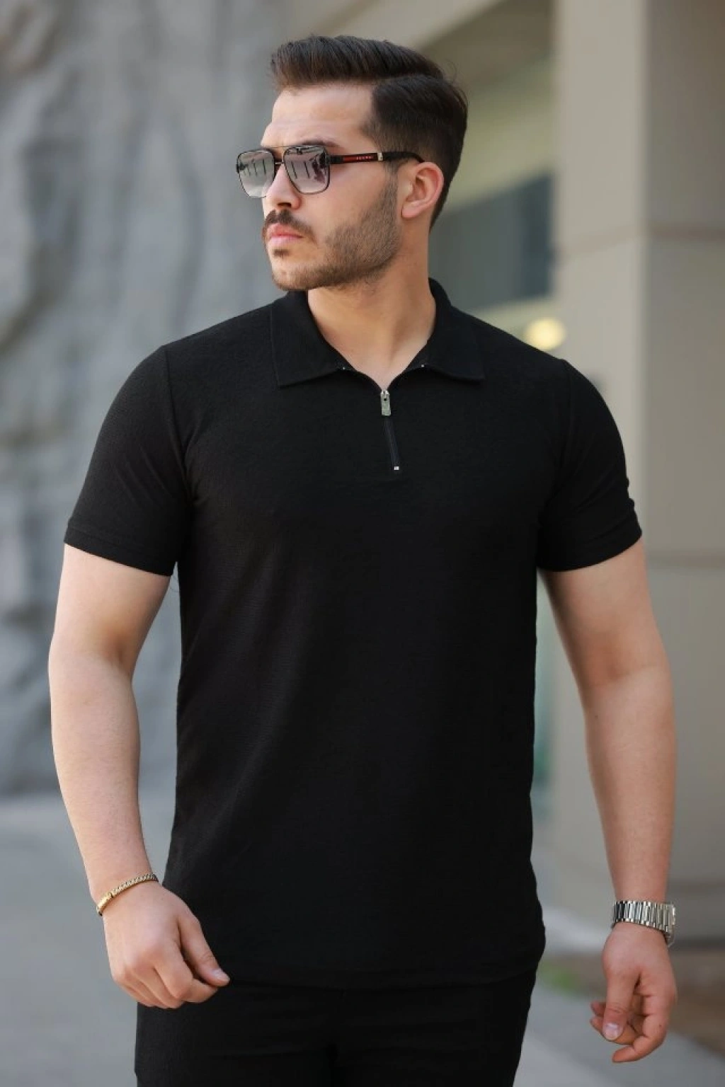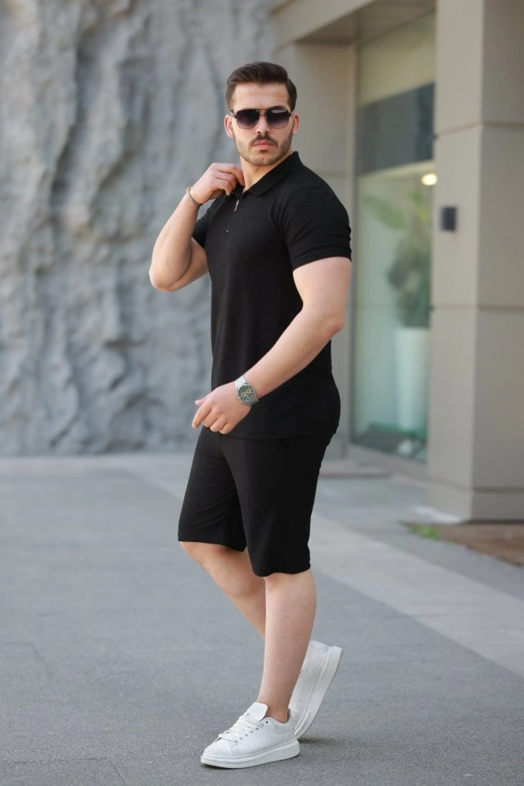 Erkek Yakalı Fermuarlı T-shirt şort Ikili Takım
