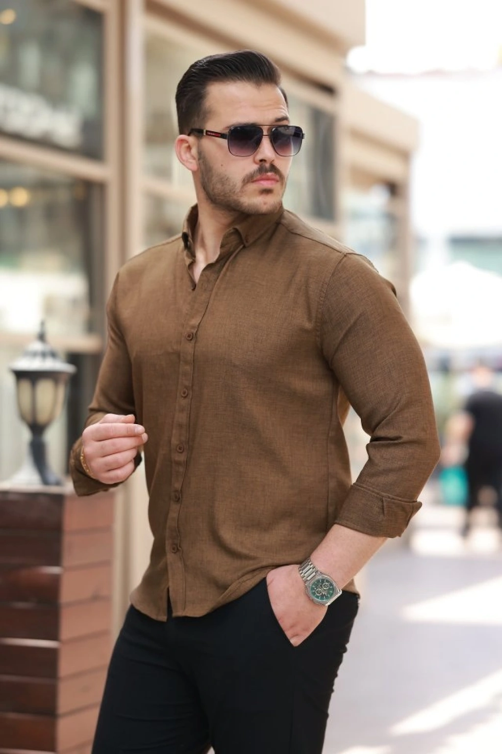 Erkek Uzun Kollu Hakim Yaka Düğmeli Erkek Müslim Gömlek
