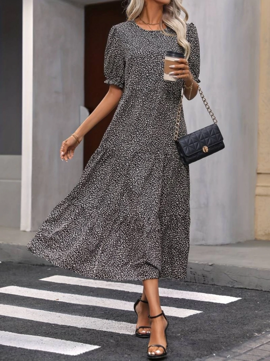 Kadın Mini Leopar Desen Midi üç Kat Elbise