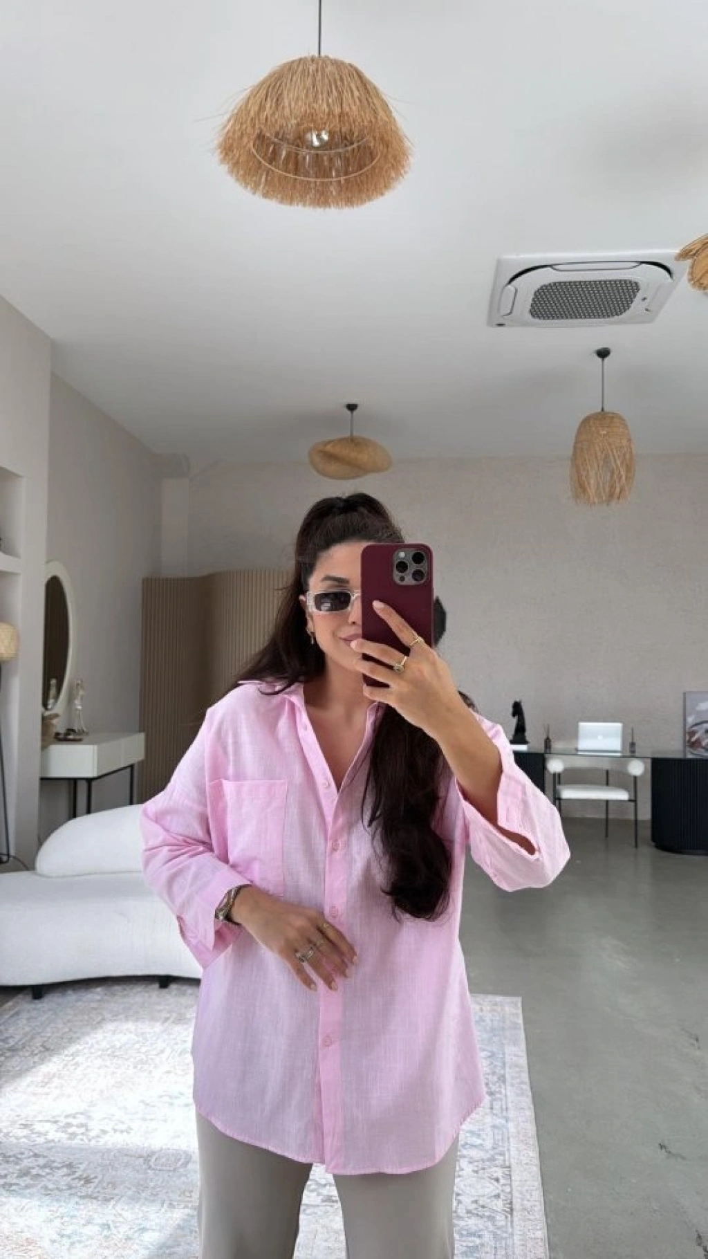 Kadın Tek Cepli Over Size Ketem Gömlek