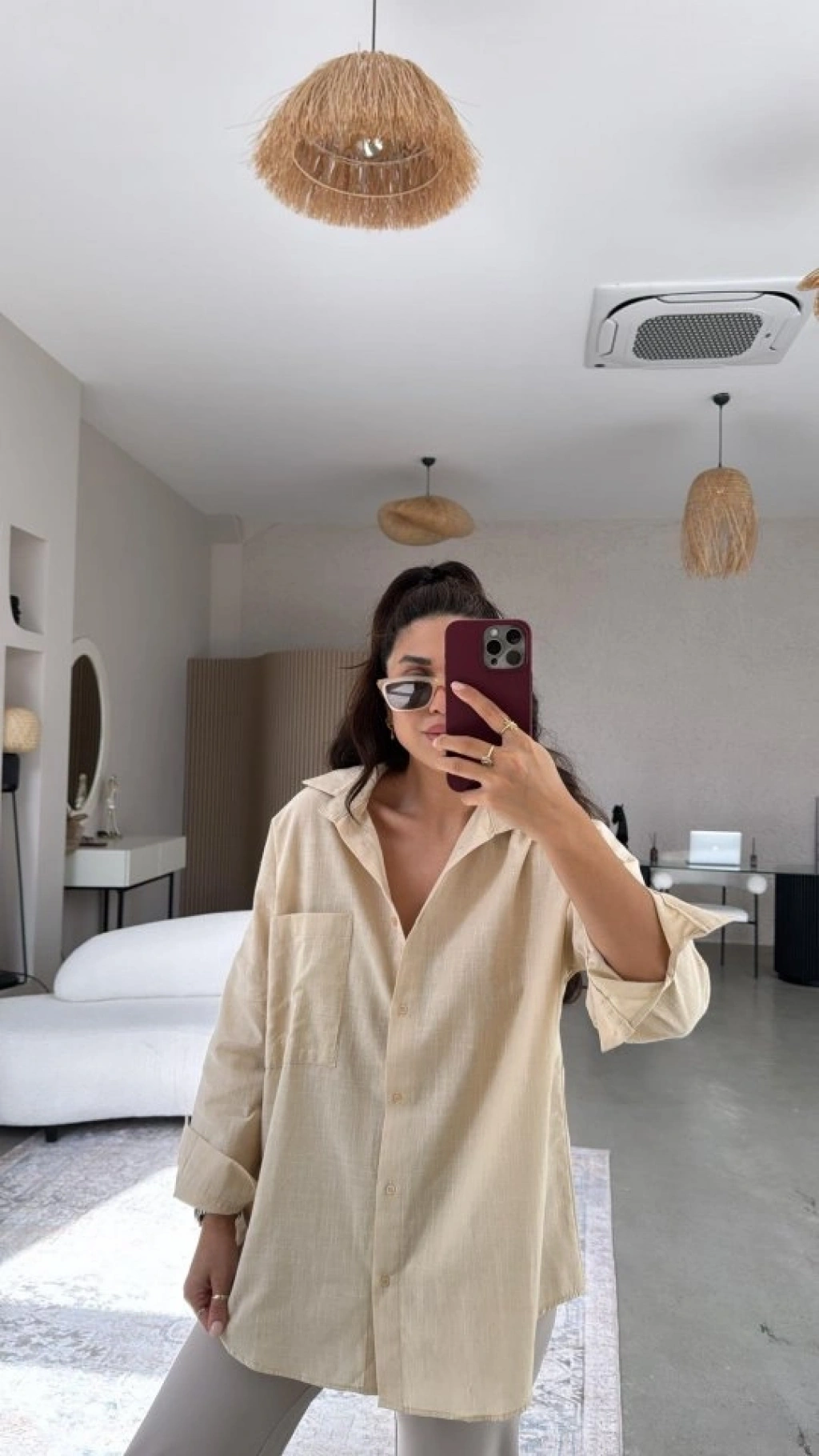 Kadın Tek Cepli Over Size Ketem Gömlek