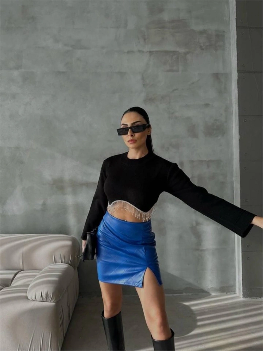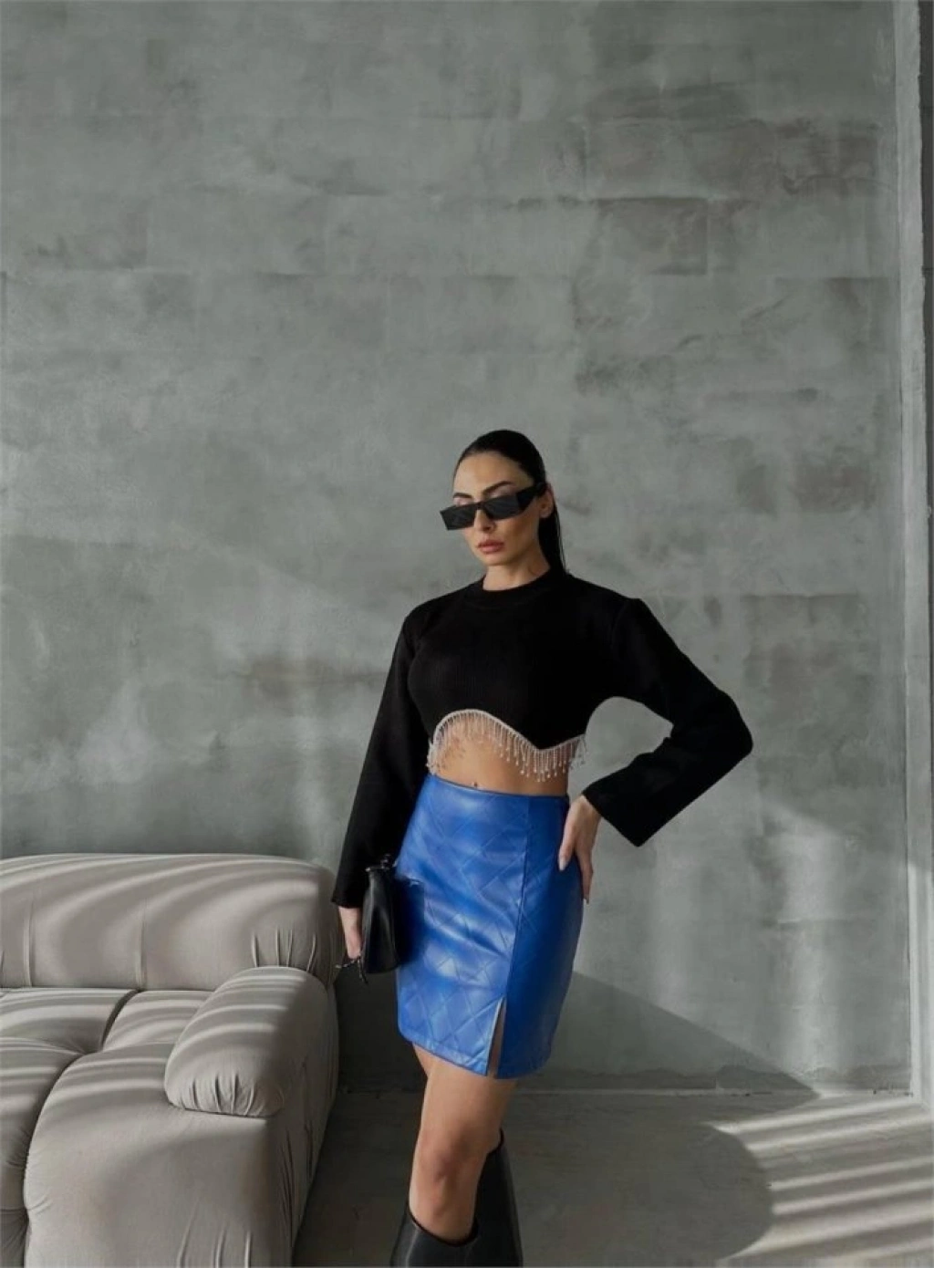 Modelin Ölçüleri: Boy:165, Kg:55, Göğüs:90, Bel:72, Kalça: 100