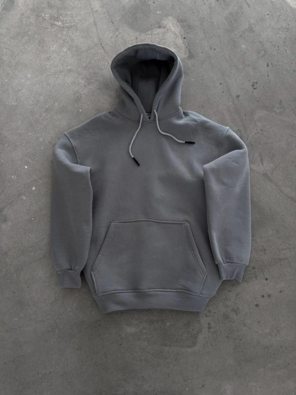 Kapşonlu Üç İplik Penye Basic SweatShirt - Boyalı Gri