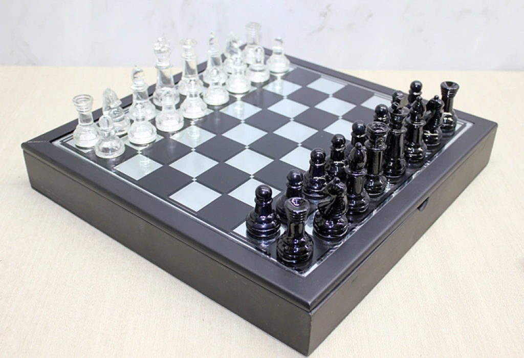 KUTULU CAM SATRANÇ SETİÜrün Özellikleri36x36 cm boyutundaki kutulu cam satranç seti, şeffaf ve siyah cam taşlarıyla hem şık hem de dikkat çekici bir tasarıma sahiptir. Parlak yüzeye sahip satranç tahtası cam materyalden üretilmiş olup, sağlam yapısı sayesinde uzun ömürlü kullanım sağlar. Cam satranç taşları estetik görünümüyle masaüstü dekorasyonuna da katkı sunar. Özenle hazırlanmış kutusu sayesinde taşlar düzenli şekilde saklanabilir ve taşınabilir. Hem hediye hem de bireysel kullanım için ideal bir zeka oyunu setidir.Paket İçeriği1 adet Kutulu Cam Satranç Seti