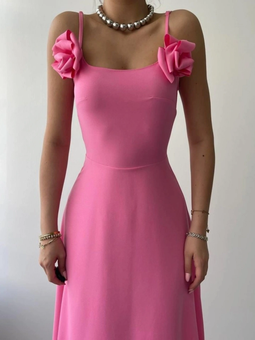 Matilda Gül İp Askılı Elbise