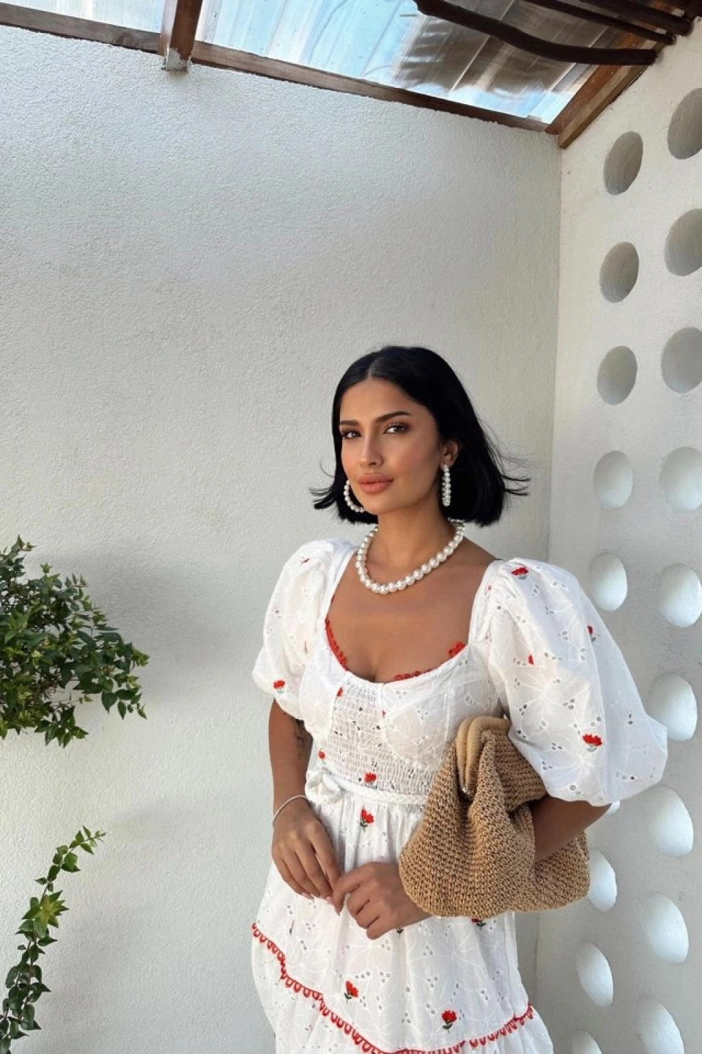 Nar Çiçeği Dantel Detaylı Brode Elbise