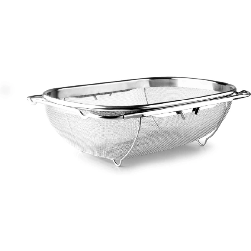 PASLANMAZ ÇELİK TELESKOPİK SÜZGEÇÜrün ÖzellikleriPaslanmaz çelik teleskopik süzgeç, meyve, sebze, makarna gibi yiyecekleri yıkamak veya süzmek için kullanılır. Dayanıklı paslanmaz çelik yapısı uzun ömürlüdür ve etkili süzme sağlar. İnce delikli tel örgü yapısı sayesinde küçük parçaların kaçmasını önler. Teleskopik açılıp kapanabilir yan kolları, süzgecin lavabo üzerine kolayca yerleştirilmesini sağlar ve farklı lavabo genişliklerine uyum gösterir. Süzgeç, katlanabilir ayakları sayesinde yerden yükseltilerek daha hijyenik kullanım sunar. Hem ev tipi mutfaklar hem de profesyonel mutfaklar için uygundur.Paket İçeriği1 Adet Paslanmaz Çelik Teleskopik Süzgeç