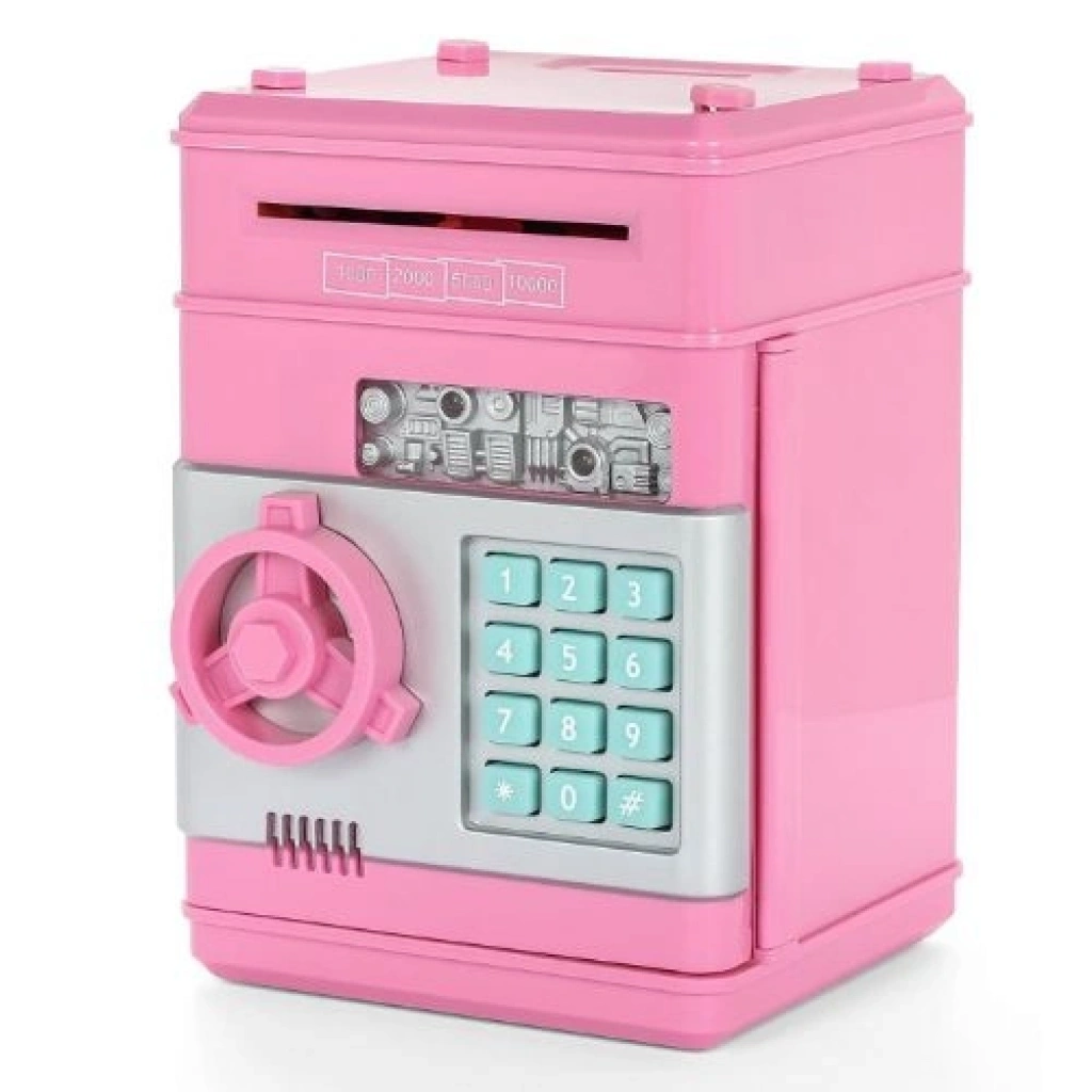 ŞİFRELİ ATM KUMBARAŞifreli ATM Kumbara banknot ve bozuk paralarınız için güvenli bir ortam oluştururken para biriktirmeyi eğlenceye dönüştürecek, tam size göre bir ürün.Şifreli ATM Kumbara, orjinal banka ATM tarzı para yükleme mekanizmasıyla kağıt paralarınızı kendi içine çeker, üst kısmından da madeni paraları atabilirsiniz.Dekoratif yapısıyla ev veya iş yerinizde kullanabileceğiniz bir üründür.Geniş haznesiyle paralarınızın yanı sıra, notlarınız, cüzdan, banka kartı, saat, kimlik kartı gibi kişisel eşyalarınızı da saklayabilirsiniz.Kasa kapısı açıldığında ışıklı ve sesli uyarı verir. Şifreli ATM Kasa Kumbaranın şifresi 0000 (dört adet sıfır) dır. Ürün Özellikleri4 haneli şifresi istendiğinde değiştirilebilir.Işıklı ve sesli uyarı işaretleri bulunur.Banknot ve bozuk para ile kullanılabilir.Kağıt parayı otomatik olarak içine çeker.Geniş hazneye sahiptir.ABS materyalden imal edilmiştir.3 adet AA kalem pille çalışır. (piller pakete dahil değildir)Stok durumuna göre renkler karışık gönderilecektir. Ürün ÖlçüleriEbat: 12.5 cm. * 13 cm. * 20 cm.Ağırlık: 590 gr. Paket İçeriği1 adet Şifreli Kasa Kumbara
