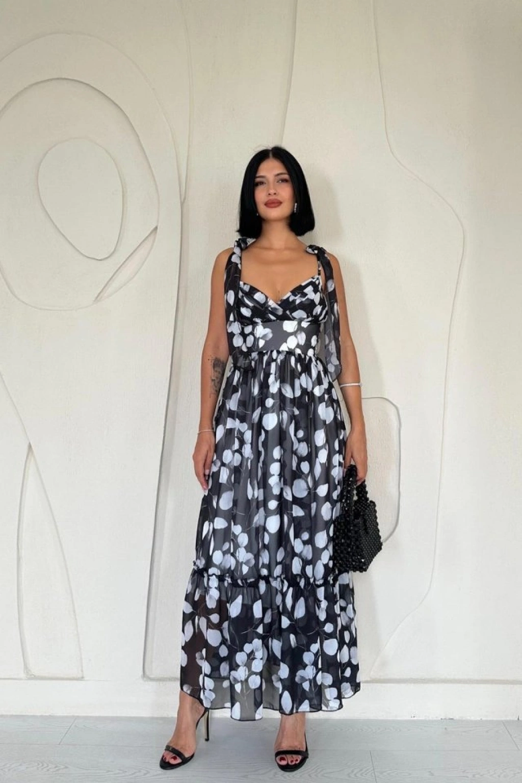 Siyah Şifon Drapeli Elbise