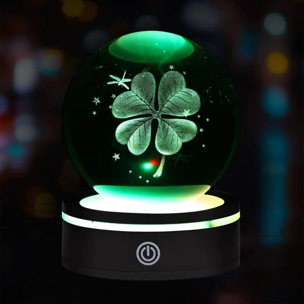 USB'Lİ YONCA TASARIMLI DÖNEN CAM KÜREÜrün ÖzellikleriUSB’li yonca tasarımlı dönen cam küre, şık ve modern tasarımıyla dekoratif bir aksesuar olmasının yanı sıra ortama huzurlu bir ambiyans katar. Küre kaliteli cam malzemeden üretilmiş olup, net ve parlak bir görüntü sunar. Stand kısmı dayanıklı plastik malzemeden yapılmıştır ve üzerinde yer alan dokunmatik düğme sayesinde renk geçişlerini kontrol edebilir veya ışığı sabit bir renkte tutabilirsiniz. USB bağlantısıyla çalışarak elektrikle kullanım kolaylığı sağlar. 8 cm boyutundaki cam küre, 5 cm x 8,5 cm ölçülerindeki stand üzerinde döner şekilde tasarlanmıştır. Evinizde, ofisinizde veya hediye olarak tercih edebileceğiniz özel ve estetik bir üründür.Paket İçeriği1 adet USB’li yonca tasarımlı dönen cam küre